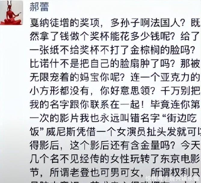 威尼斯影后的奖杯还没焐热,网上就吵翻了天。先是网友有太多质疑的声音:“现在的娱乐圈哪里来的真材实料,太少啦,水深”"人红是非多,简单来说就是‘嫉妒’。"“这奖拿的挺莫名其妙”接着郝蕾的发文也充满讽刺意味,明里暗里就是阴阳这个奖项不公平:“威尼斯凭借一个女演员扯头发就能得奖,这个影后还有含金量吗”